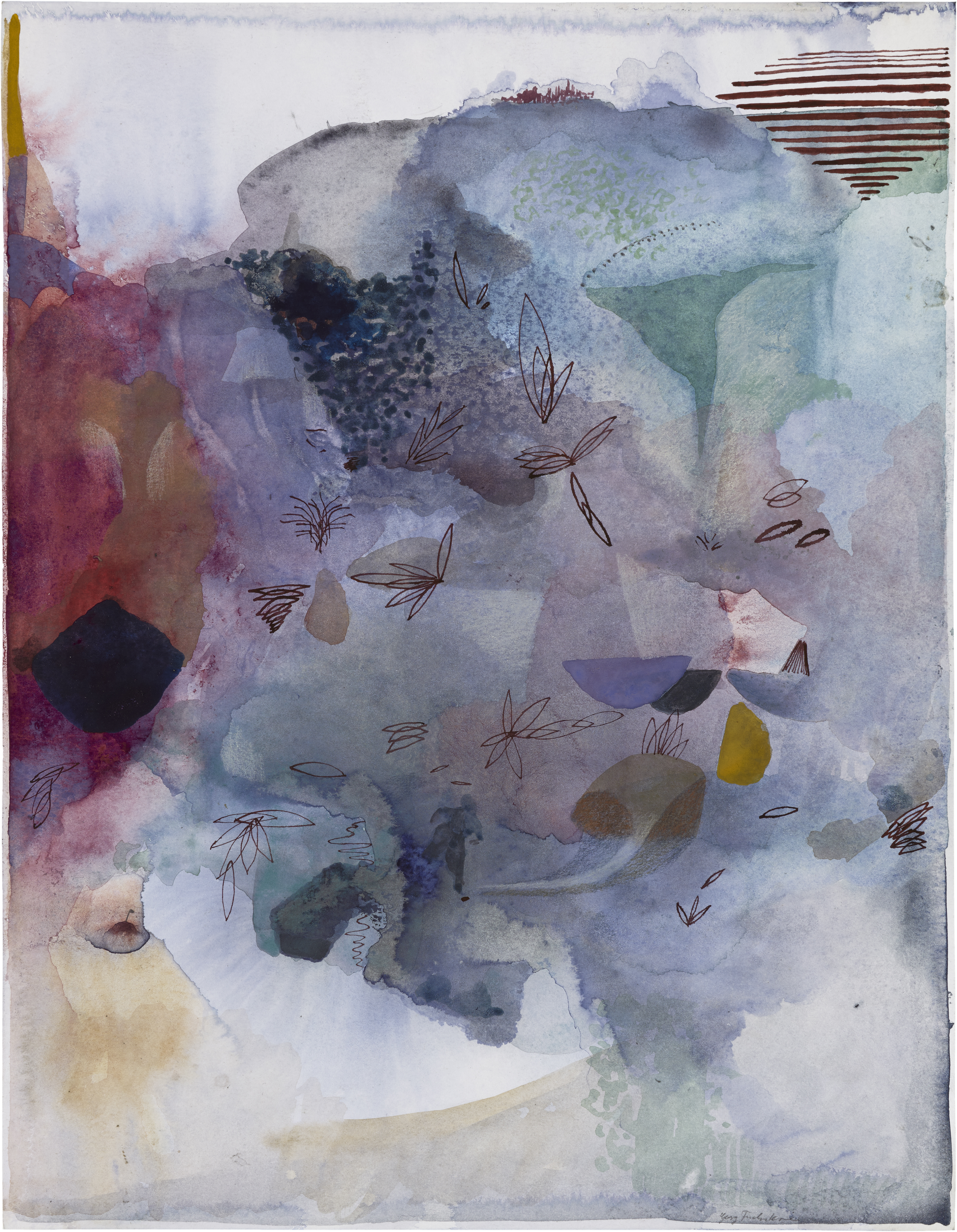 Foto: Georg Fuchssteiner, Unterirdisches Blühen, 2024, Aquarell, Tusche und Buntstift auf Papier, 35 x 27 cm. Copyright: der Künstler und Galerie Jahn und Jahn, München/Lissabon
