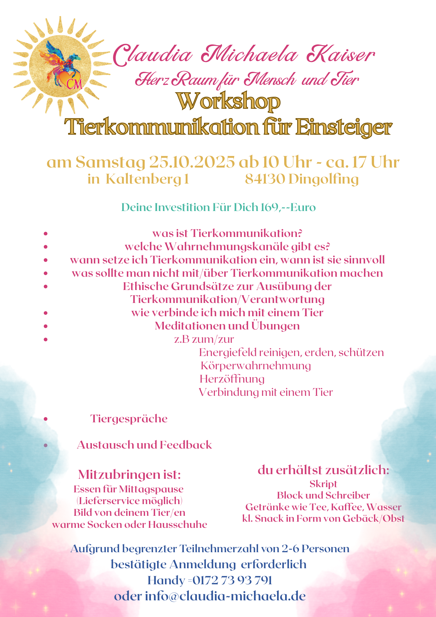 Der Workshop findet in Präsenz statt und ist auch die Basis für die folgenden Aufbau Workshops Tierkommunikation