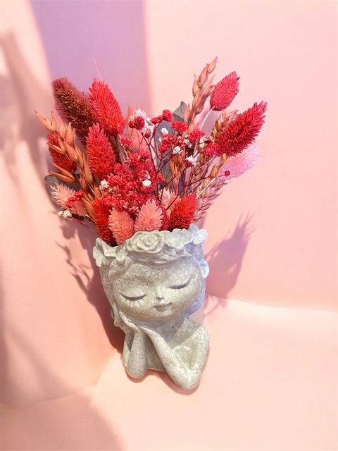 - deko aus gießbeton oder keraflott mit bunten trockenblumen
