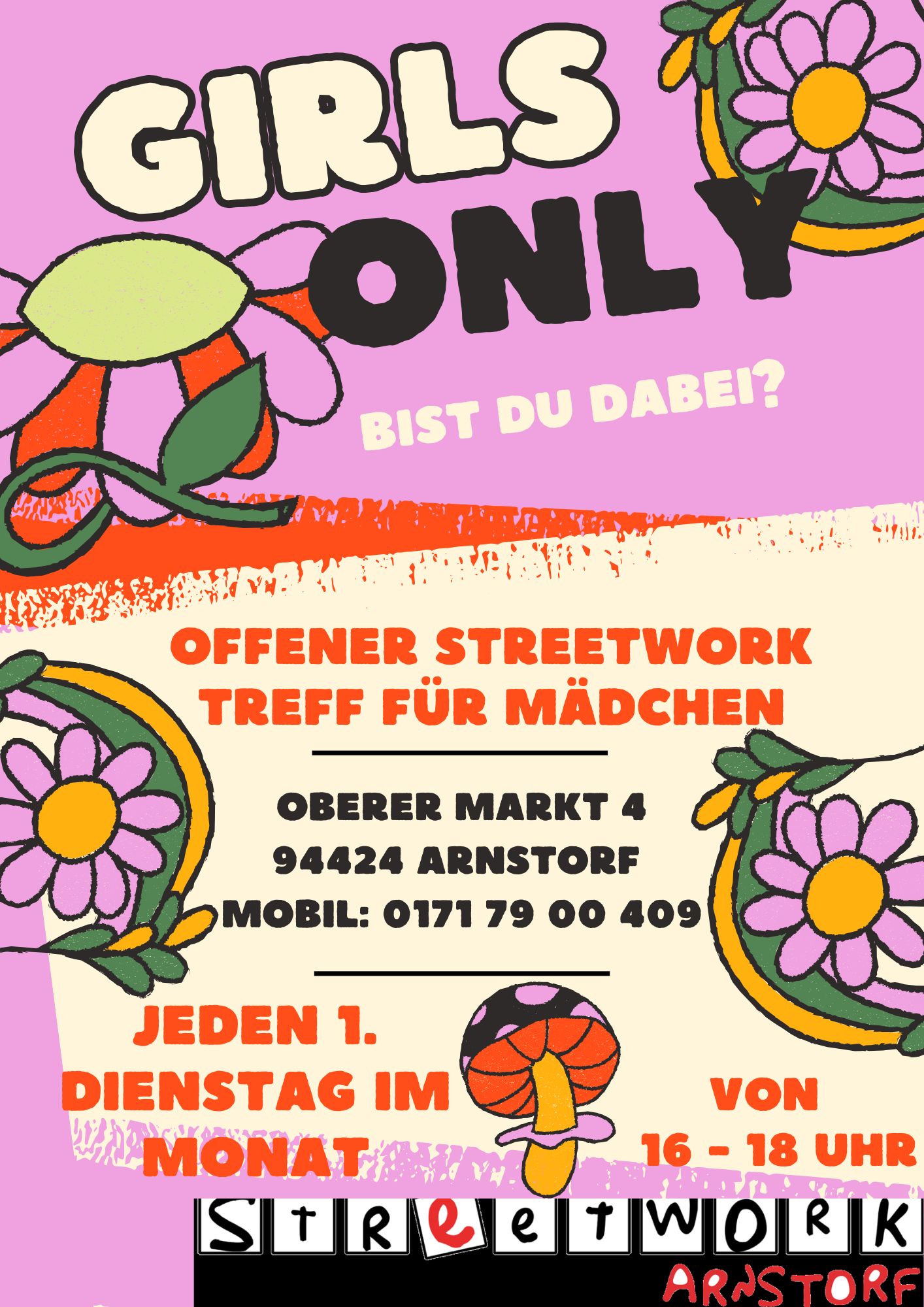 Jeden ersten Dienstag im Monat findet im Streetwork-Büro Arnstorf der Girls’ Treff von 16 bis 18 Uhr statt!