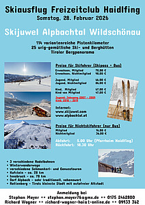 Eintägiger Skiausflug ins Alpbachtal Wildschönau in Österreich. Abends wird später heimgefahren, um auch das Apres-Ski noch genießen zu können. Die Fahrt ist auch für Nichtmitglieder. Näheres im Anhang.