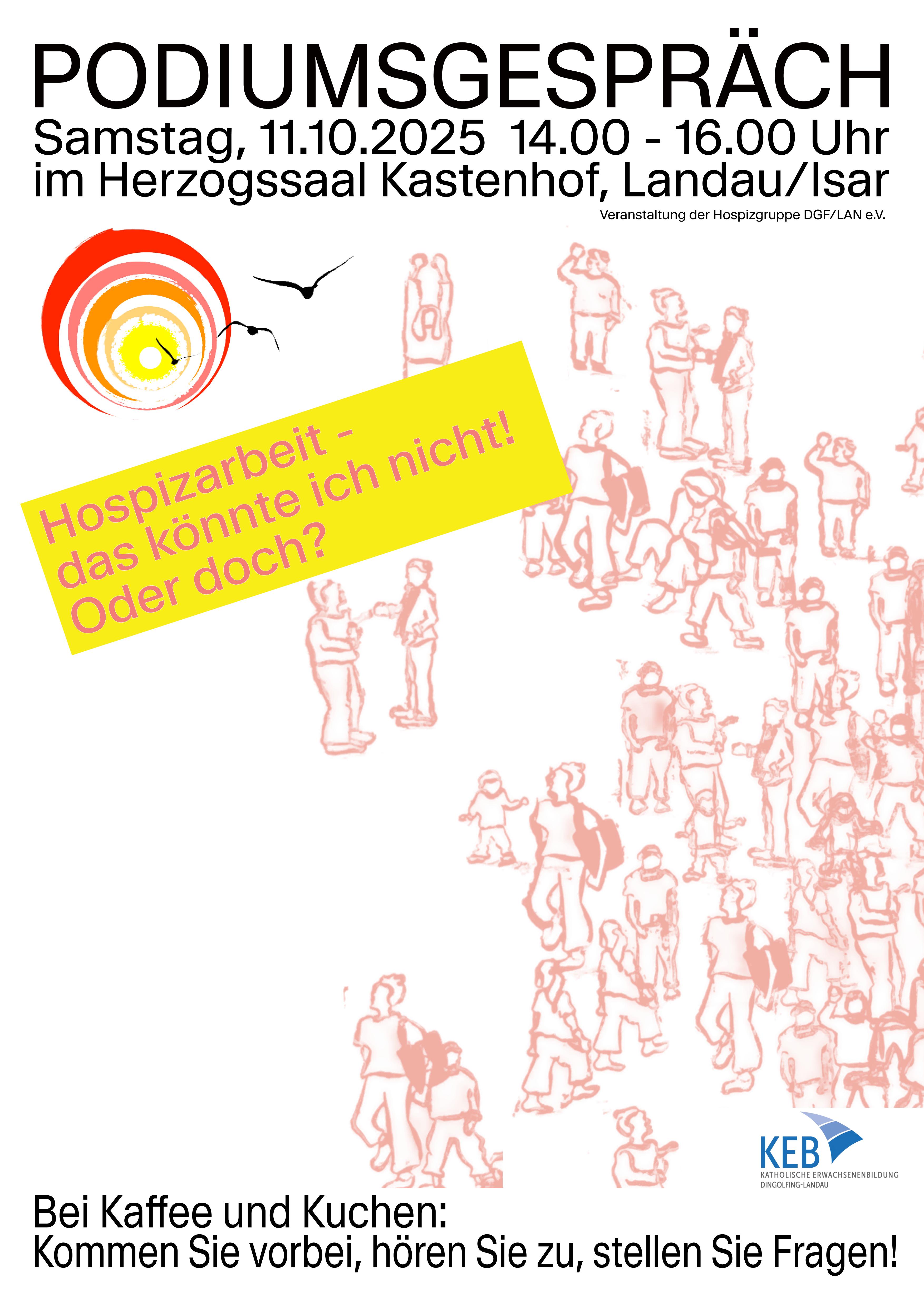 steht ein Podiumsgespräch im Mittelpunkt, das Einblicke in die wertvolle Arbeit von ehrenamtlich Tätigen in der Hospizbegleitung gibt. Viele Menschen verbinden mit Hospizarbeit vor allem die Auseinandersetzung mit Sterben und Tod – doch dahinter steckt auch viel Menschlichkeit, Zuhören, Begleiten und Dasein.