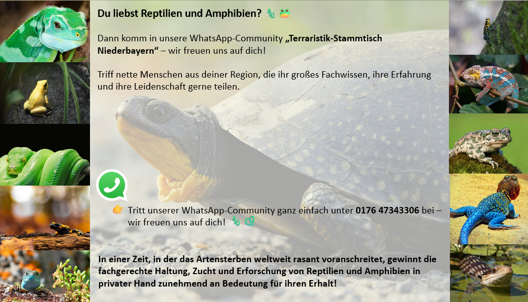 Die DGHT-Regionalgruppe Niederbayern bietet wieder ein tolles Halbjahresprogramm 2026 für alle Interessierten, die sich für Reptilien und Amphibien begeistern. Jeder ist bei uns herzlich eingeladen, unabhängig von Vorkenntnissen oder Erfahrung.