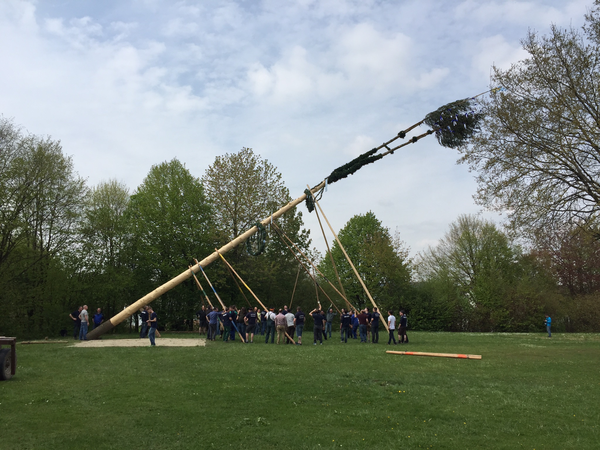 Wie alle Jahre wieder stellen wir den Maibaum nach alter Tradition auf , ohne Maschinen nur mit Muskelkraft.