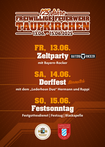 Das traditionelle Dorffest der Feuerwehr Taufkirchen findet dieses Jahr leider nicht statt. Grund dafür ist das anstehende 125-jährige Gründungsfest.