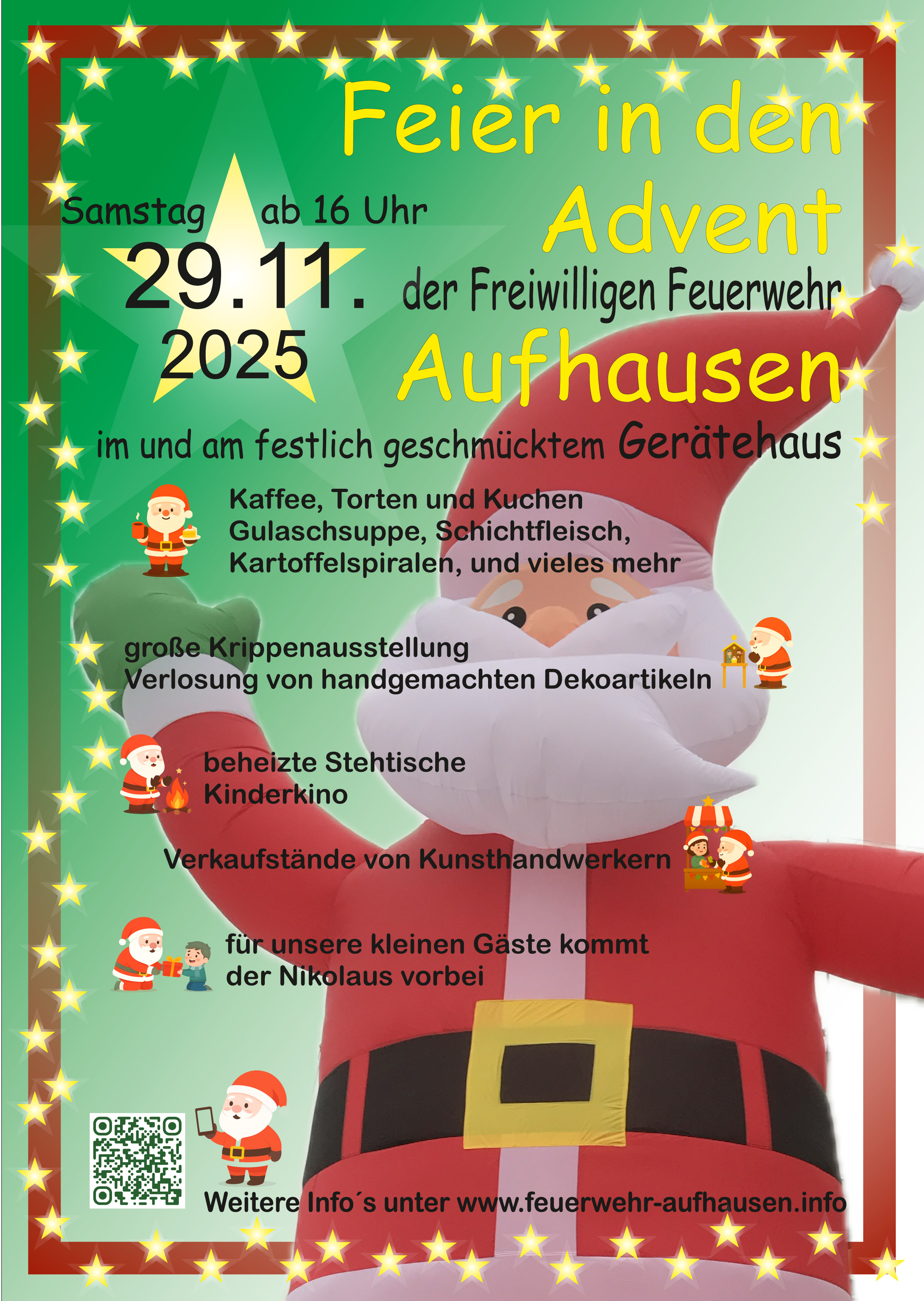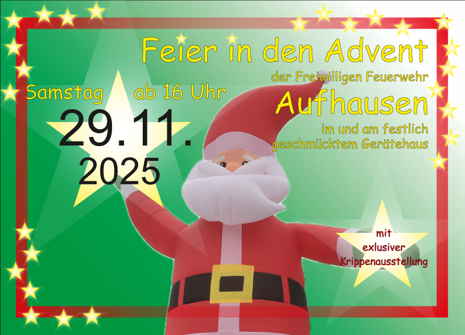 Am Samstag, 29. November 2025 ab 16 Uhr verwandelt sich das Gerätehaus der Feuerwehr Aufhausen wieder in ein kleines Weihnachtswunderland.