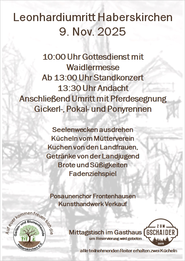 - 10.00 Uhr Hochamt zu Ehren des Hl. Leonhards mit Waidlermesse.
