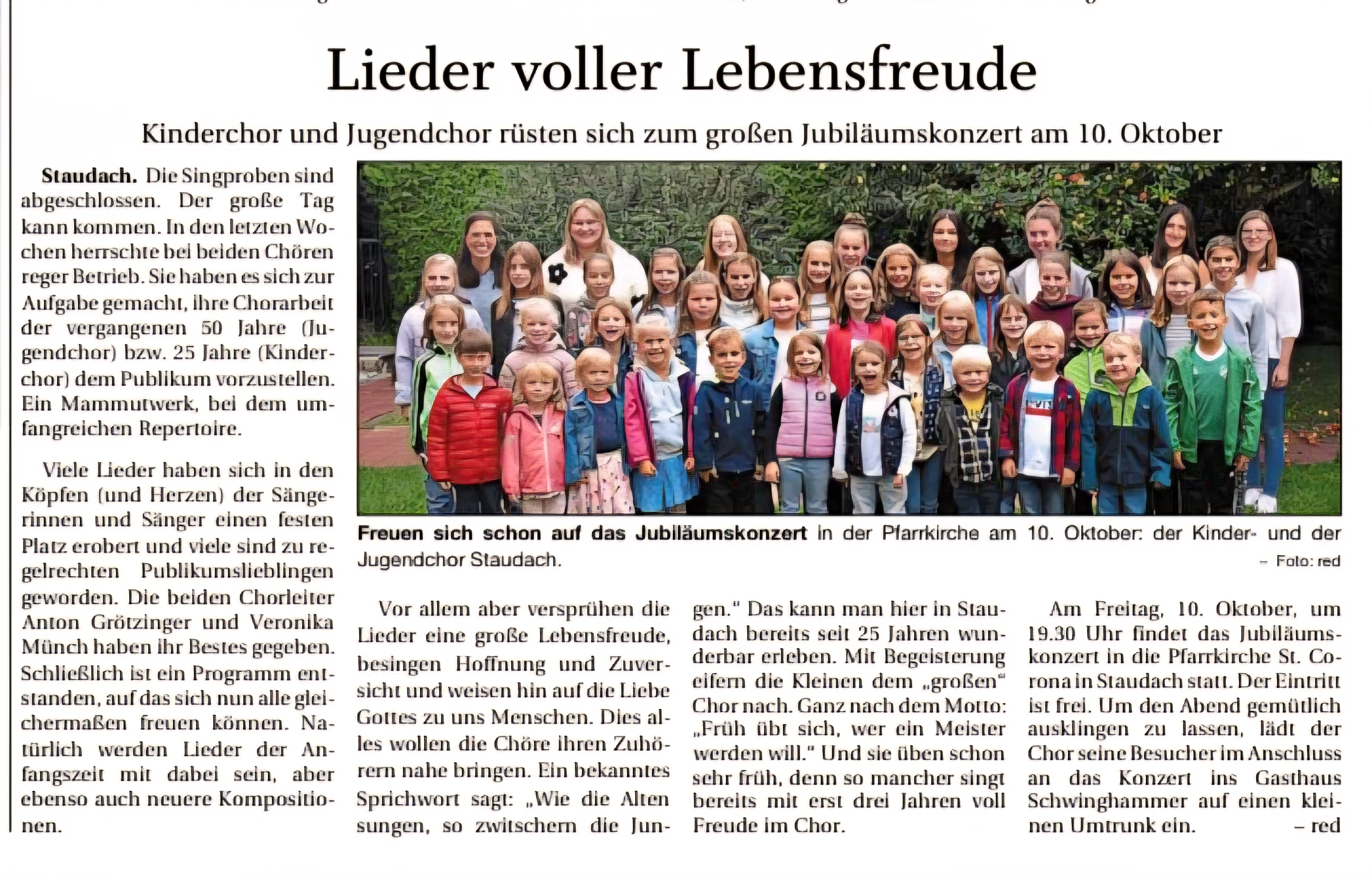 Vor 50 Jahren - im Jahr 1975 - wurde der Jugendchor Staudach gegründet.