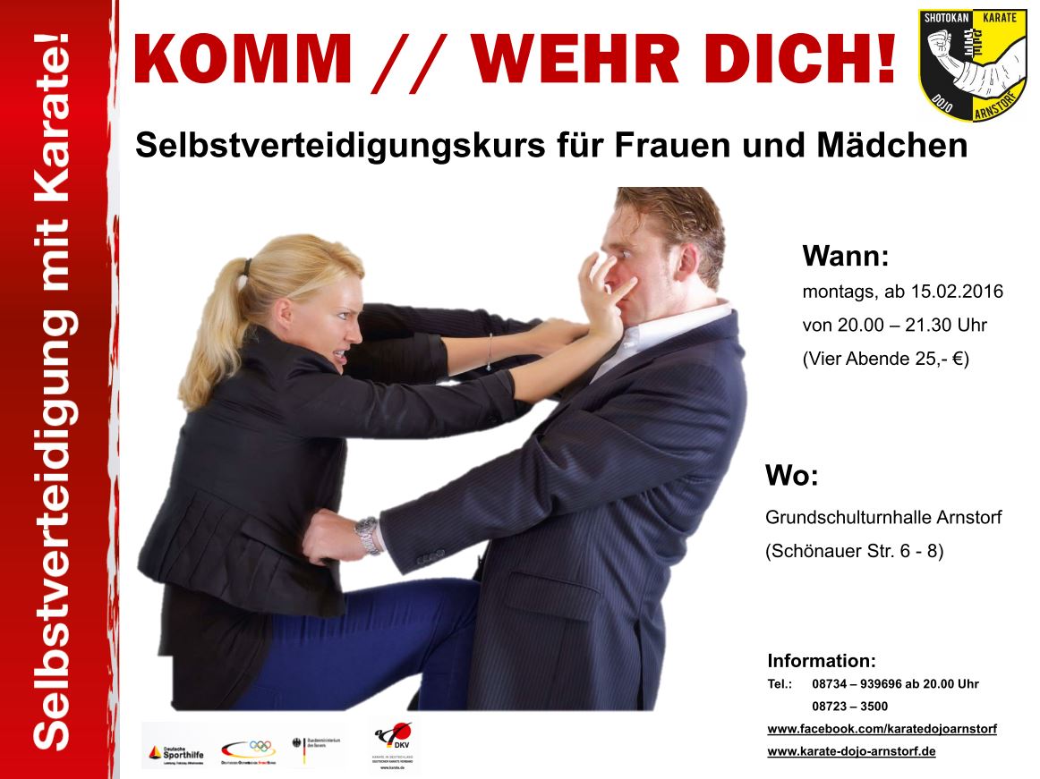Information: Tel.: 08734 – 939696 ab 20.00 Uhr08723 – 3500www.facebook.com/karatedojoarnstorfwww.karate-dojo-arnstorf.de
