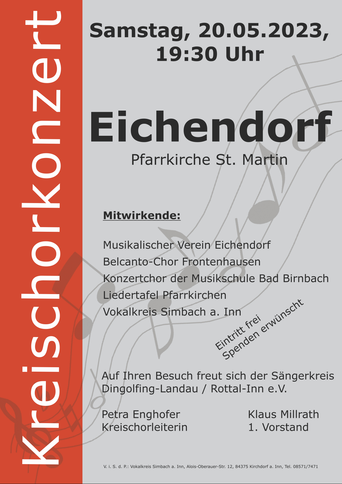 Es findet ein Chöretreffen des Sängerbunds Rottal-Inn/Dingolfing-Landau statt. Anschließend ist um 19:30 Uhr ein gemeinsames Konzert in der Pfarrkirche geplant.