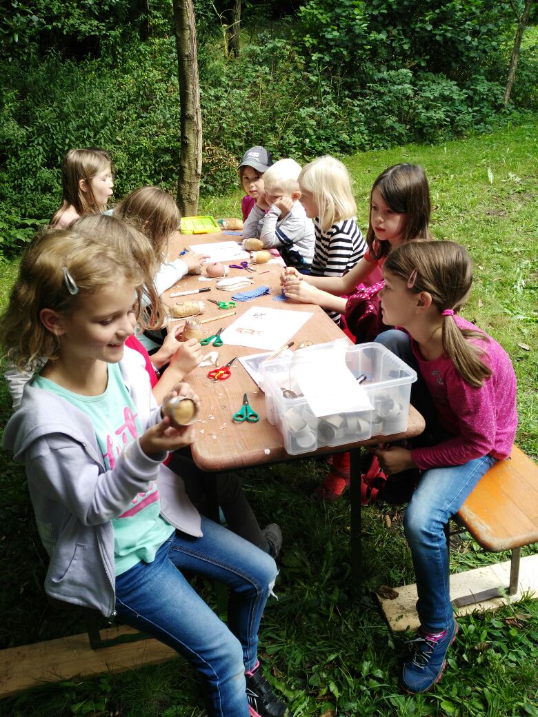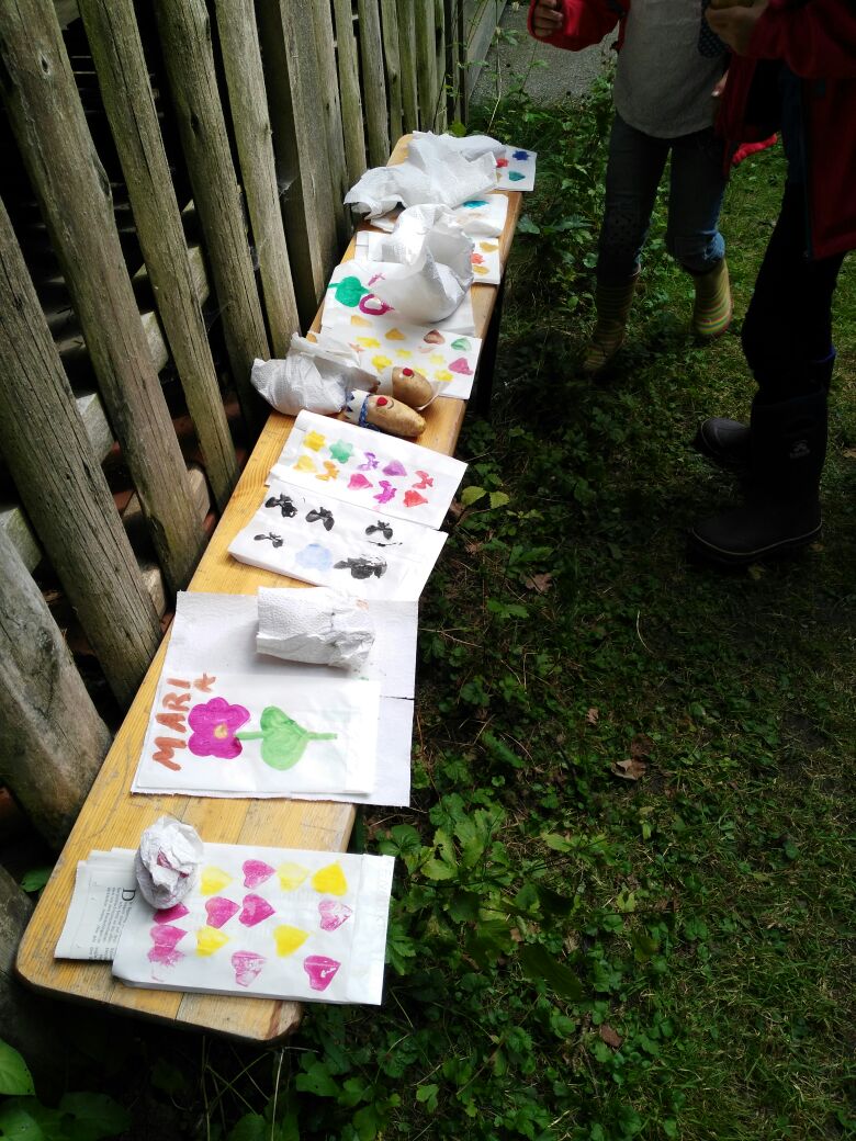 Dann wurden von den Kindern Kartoffelkönige gebastelt und Kartoffelstempel hergestellt und natürlich gleich ausprobiert.