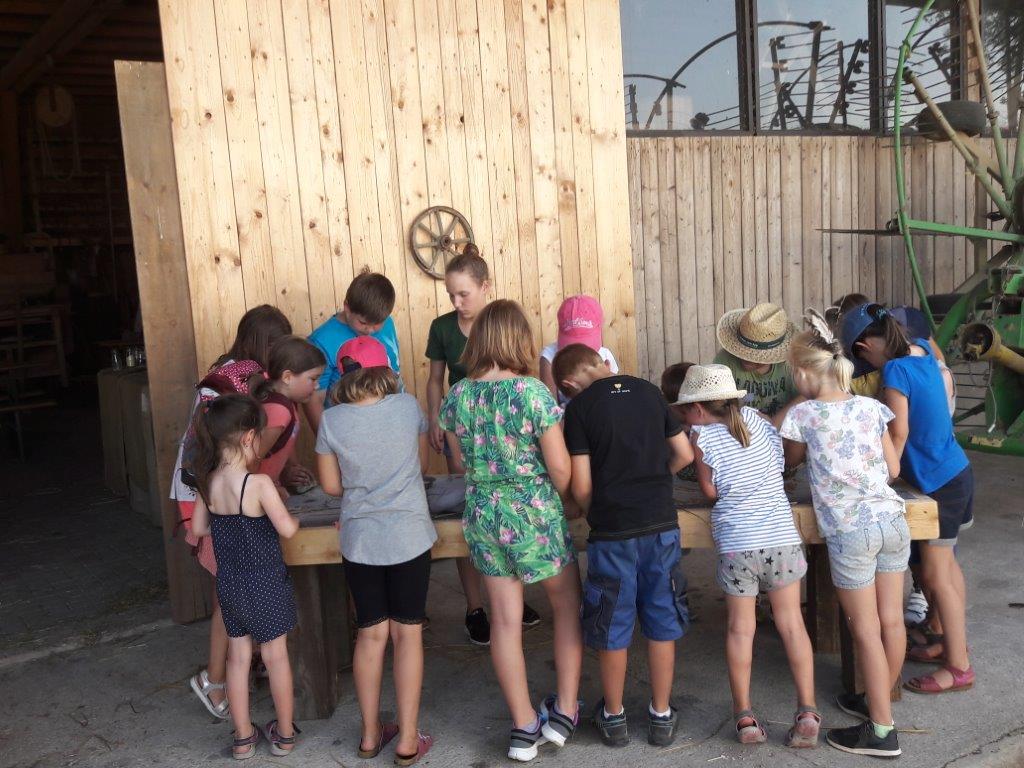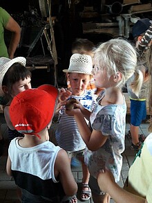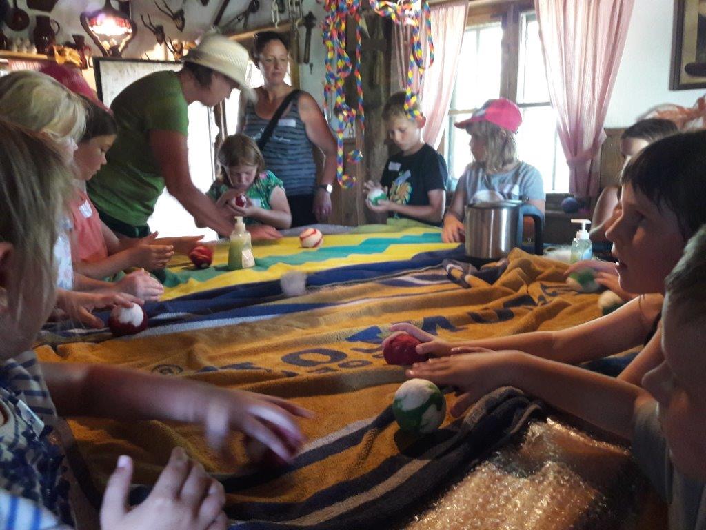 Neben dem hautnahen Tierkontakt, haben die Kinder die Möglichkeit ein kleines Objekt aus Schafwolle zu filzen.