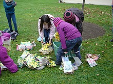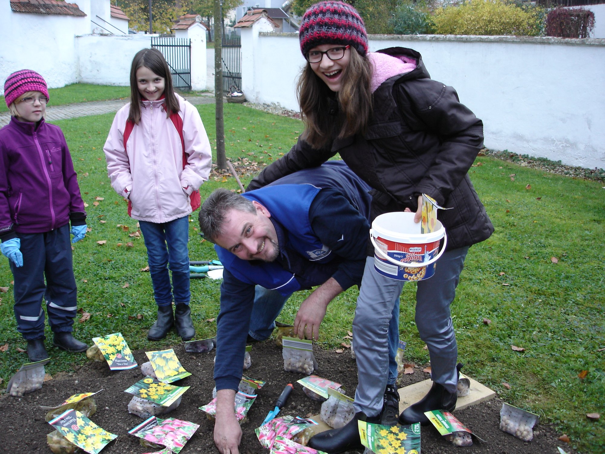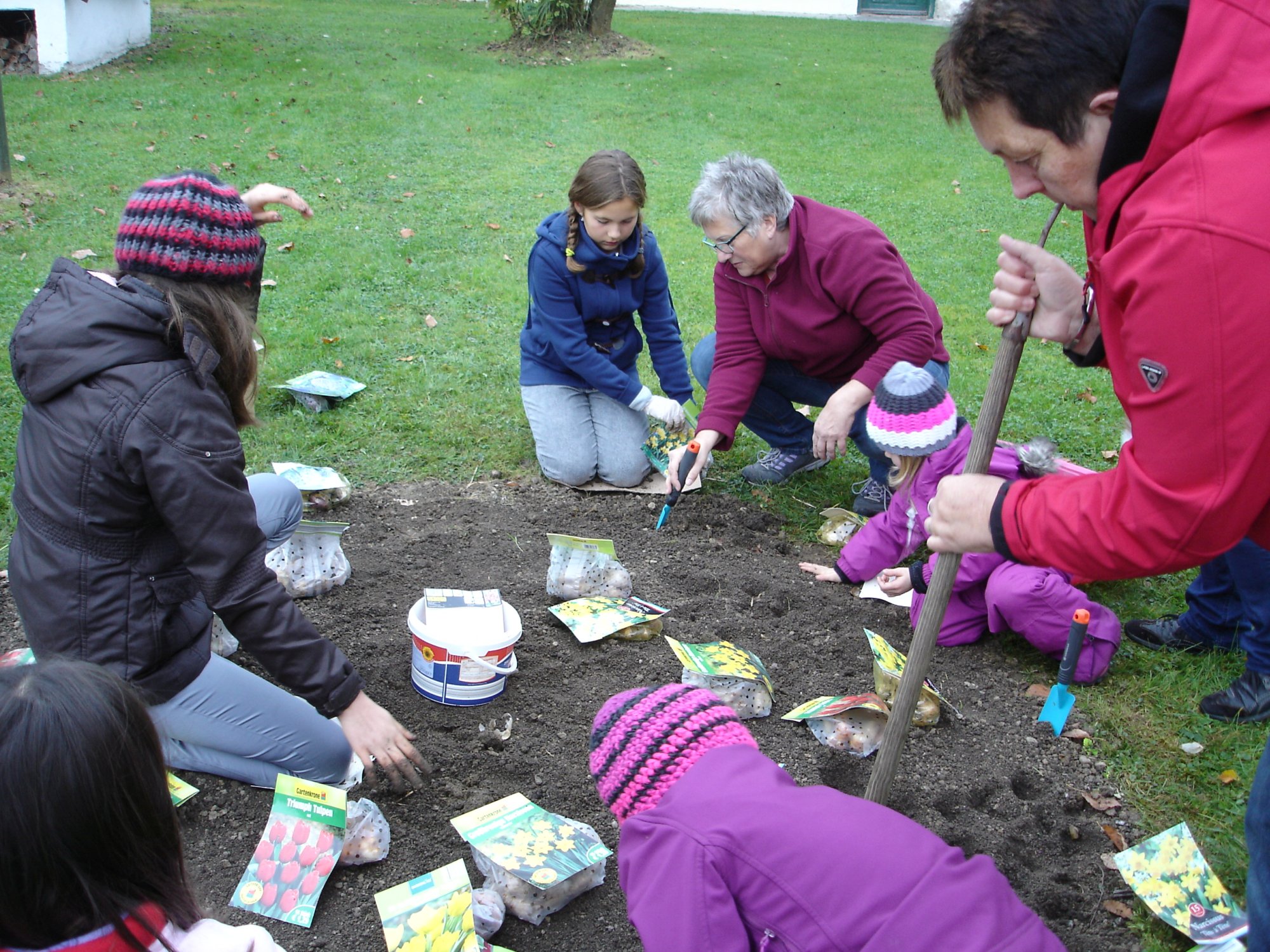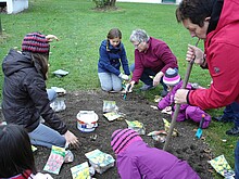 Gemeinsam mit Kindern ab 5 Jahren wird ein Kunstwerk mit Frühlingsblumen gepflanzt.