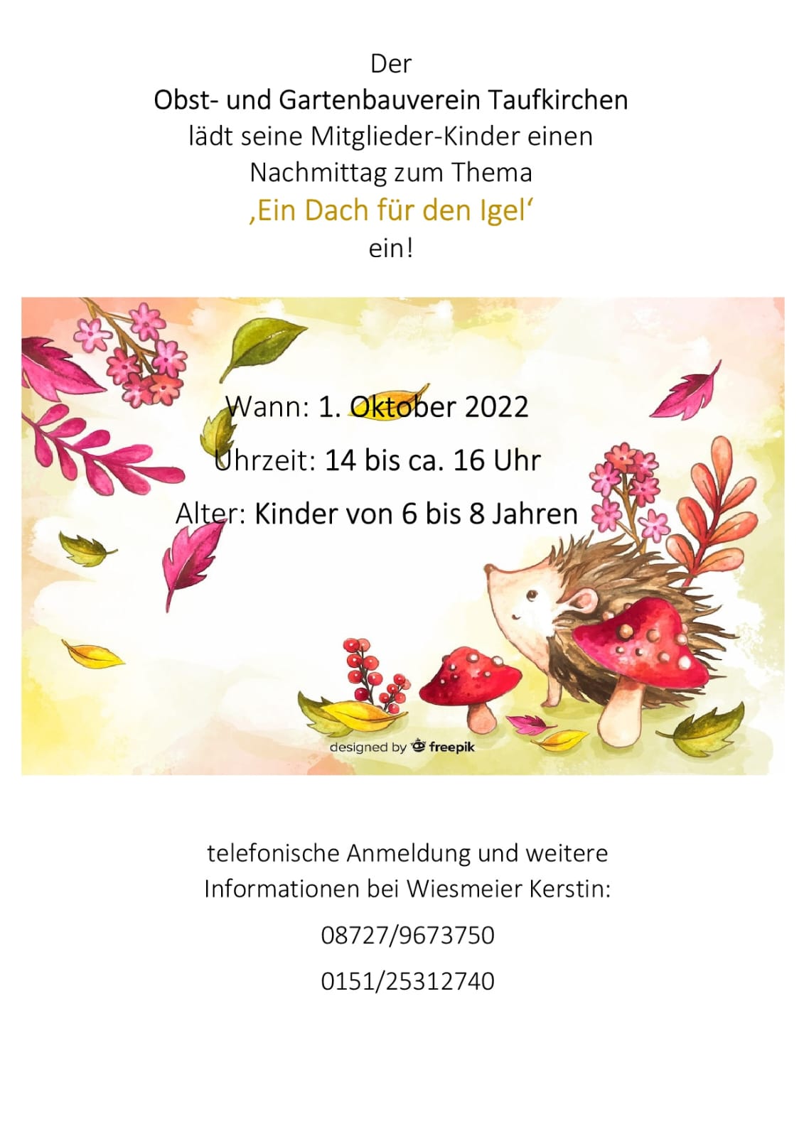 Telefonische Anmeldung und weitere Informationen telefonisch bei Kerstin Wiesmeier.