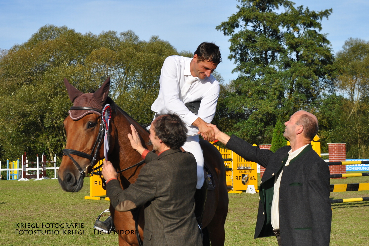 Die unten stehenden Bilder zeigen den letztjährigen Gewinner des großen Preises vom Markt Arnstorf, eine Prüfung der Klasse M** mit Stechen, Tobias Bachl mit Question d´Honneur B, sowie den zweitplatzierten Andreas Heller und drittplatzierten Thomas Hofbauer.