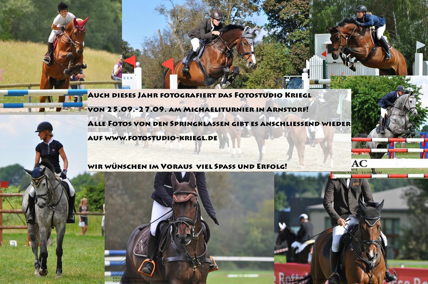 Vom 25. bis 27. September 2015 findet das diesjährige Michaeliturnier statt. Freitag gegen Mittag beginnen wir mit den Prüfungen auf dem Springplatz. Über das Wochenende finden neben den Finalprüfungen zum Nürnberger Burgpokal, das PSG-Cup Finale auch einige Jungpferderprüfungen, sowie Spring-und Dressurprüfungen bis zur Klasse S* statt.
