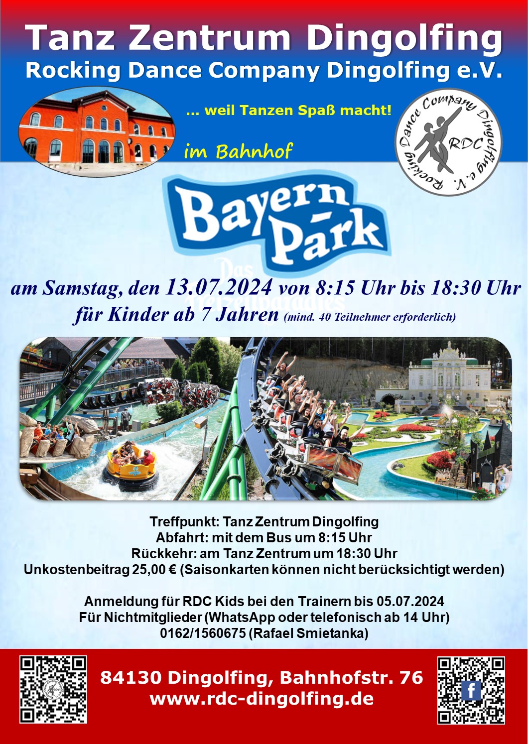 Geplanter Ausflug in den Bayernpark am 13.07.2024 für Kinder ab 7 Jahren